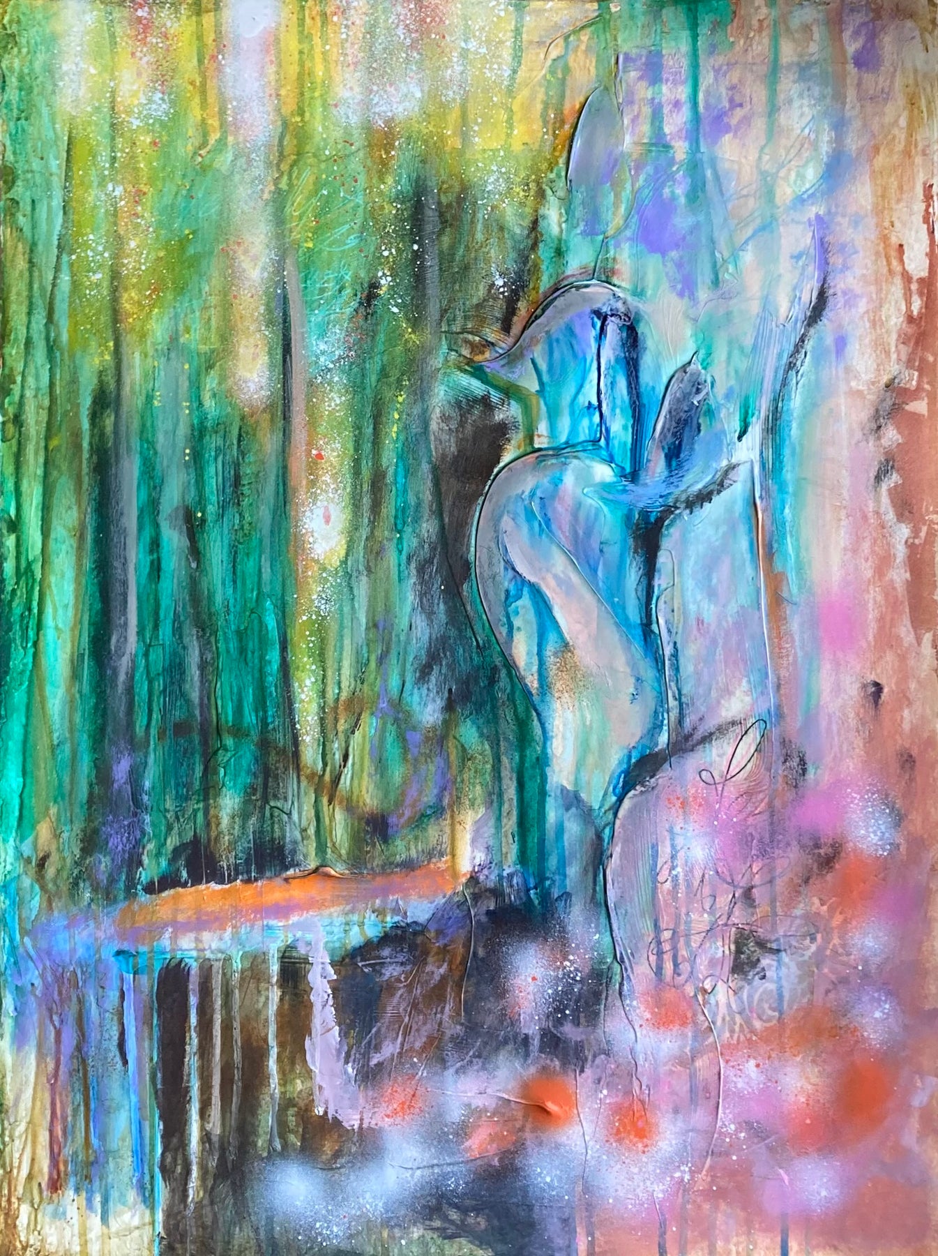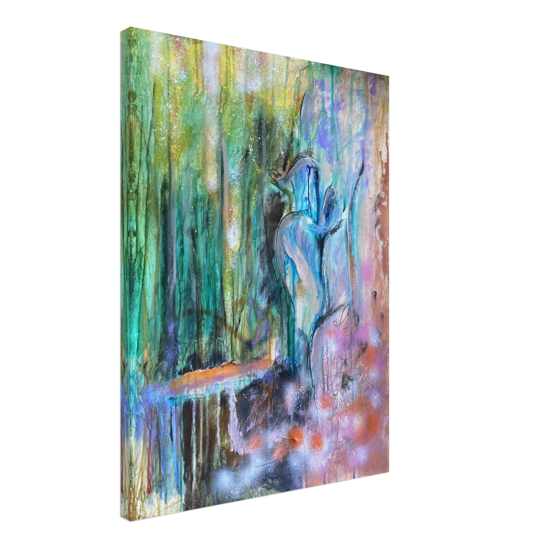 In a world that constantly tells us to prove, produce, and perform, this painting speaks to the deep spiritual shift that happens when you choose to tune all of that out. The glowing layers, the sparkles of unexpected colour, the soft greens and vibrant oranges—they echo the quiet joy of being present, not perfect.