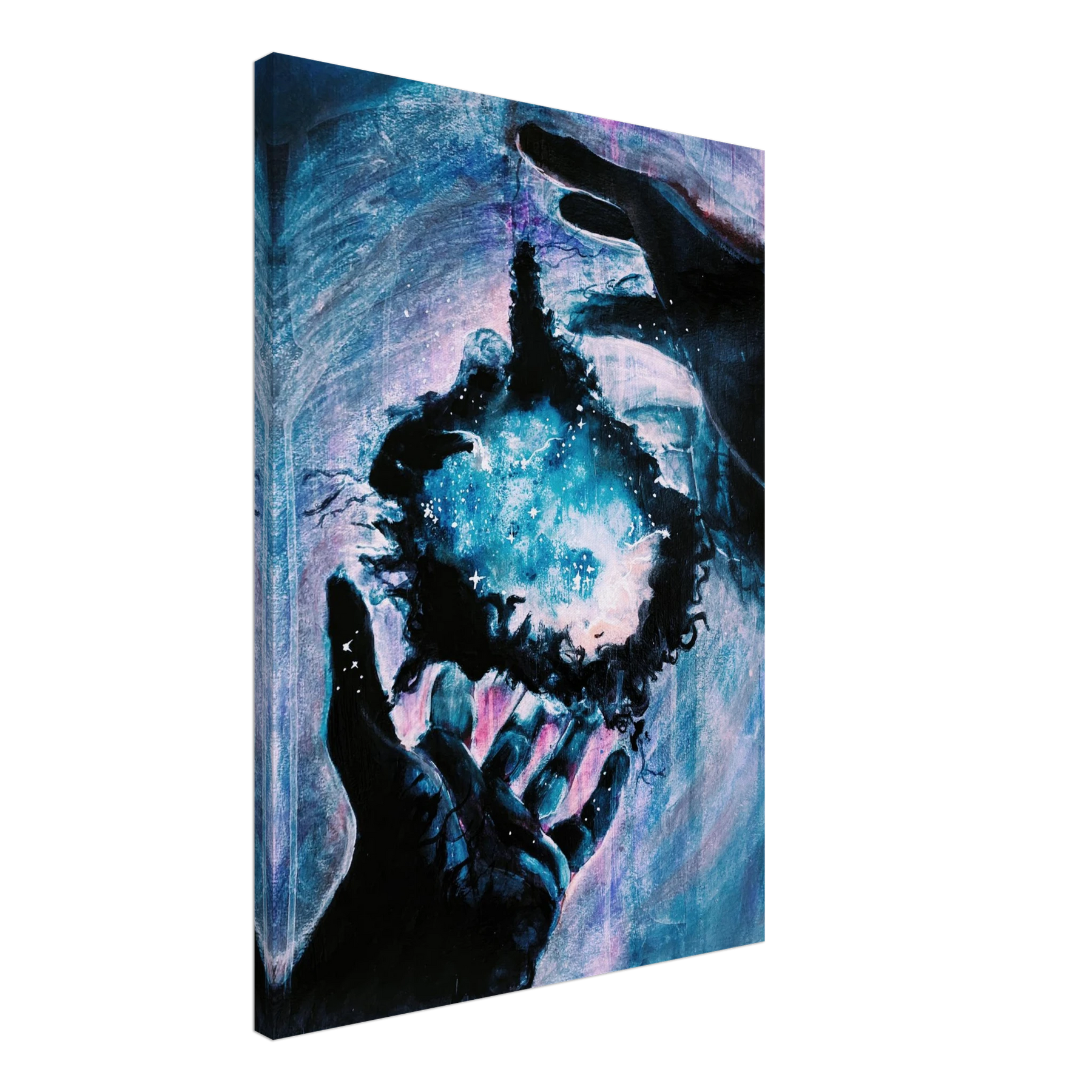“Dust and Stars” is about that holy tension we live in daily. We were made from the dust of the earth, yet marked with the fingerprints of heaven. We’re fragile, temporary—and still, God breathes His image into us. The piece reflects that paradox: hands dirt-stained and human, holding something too glorious to contain. Creation. Calling. Glory. All suspended in motion.