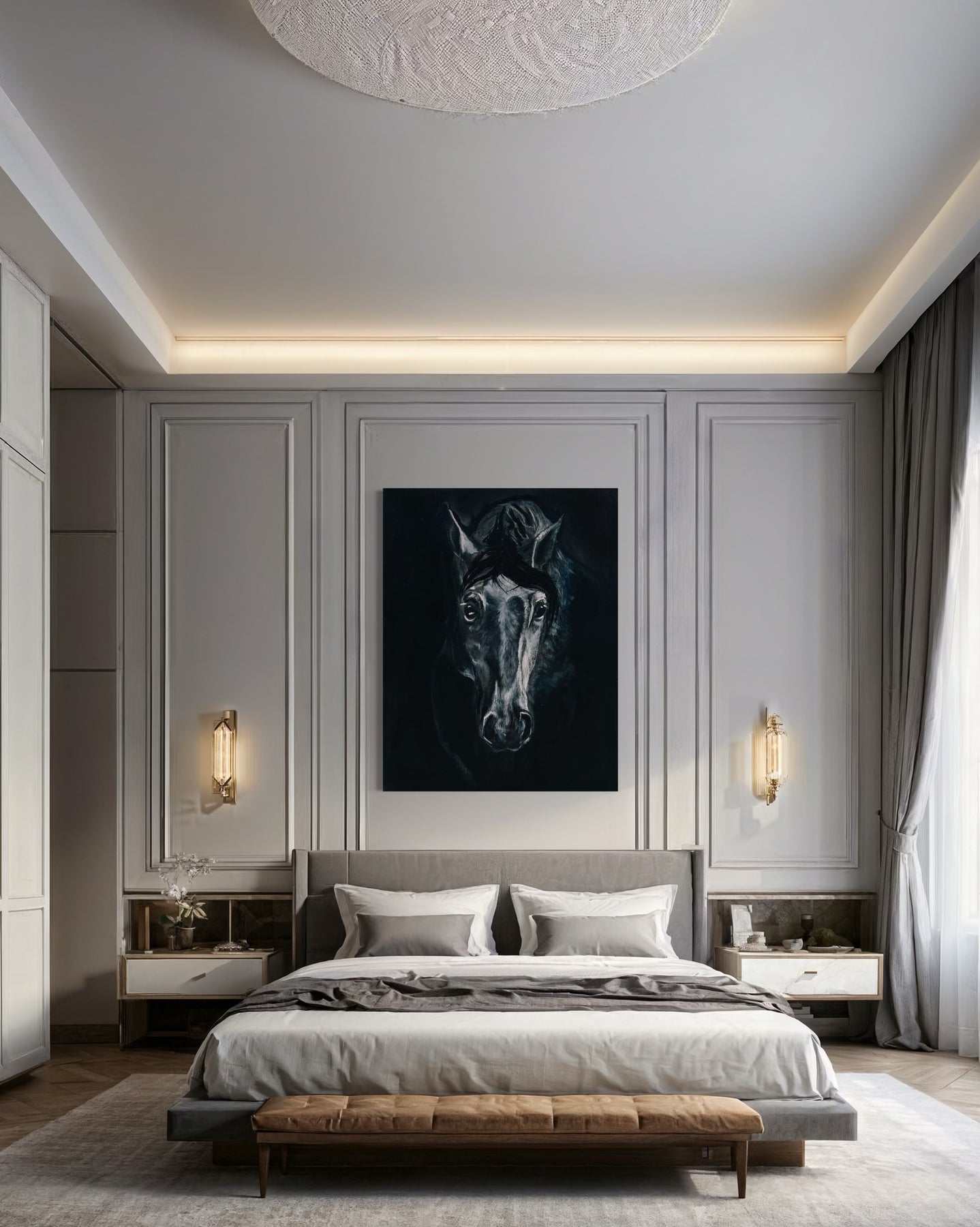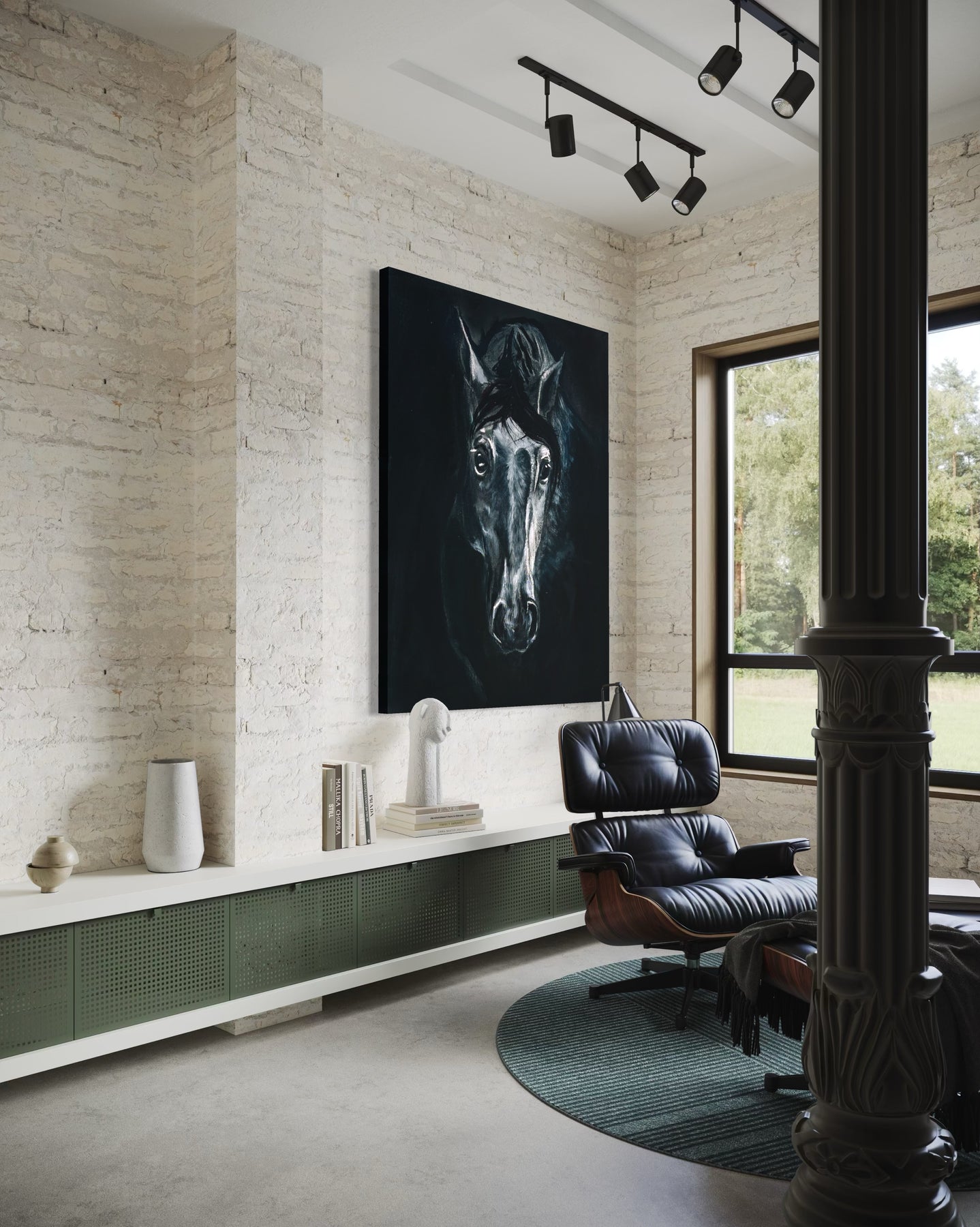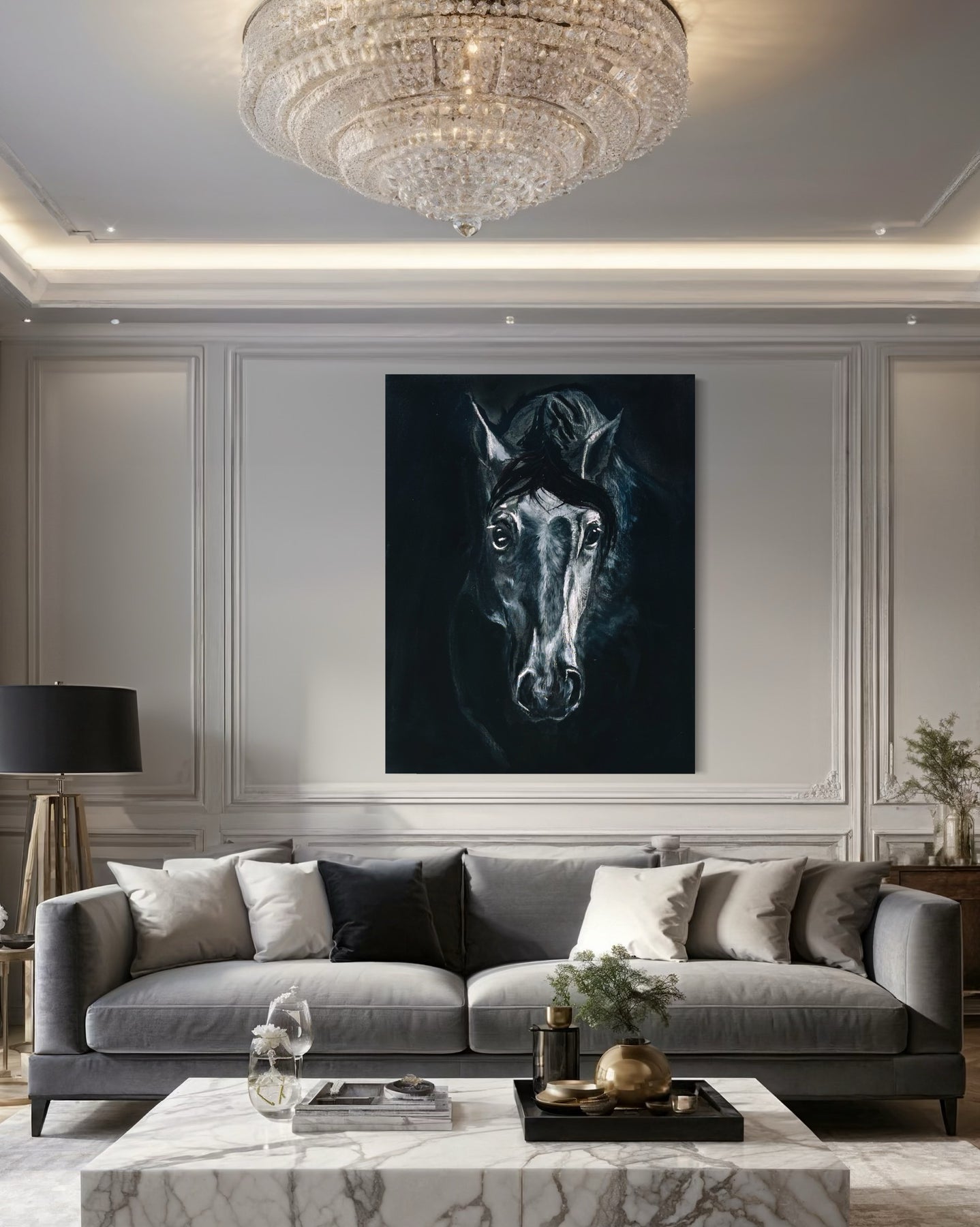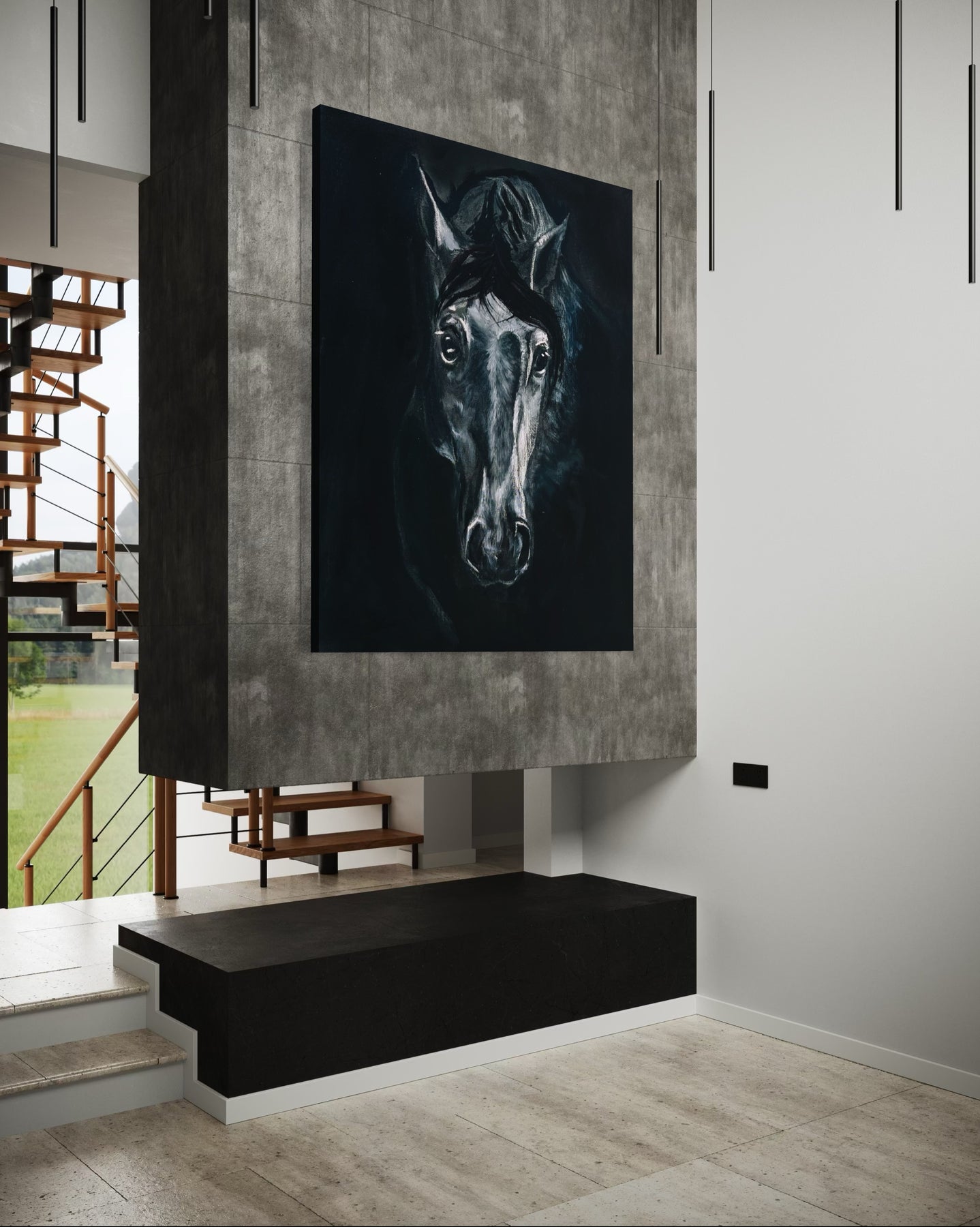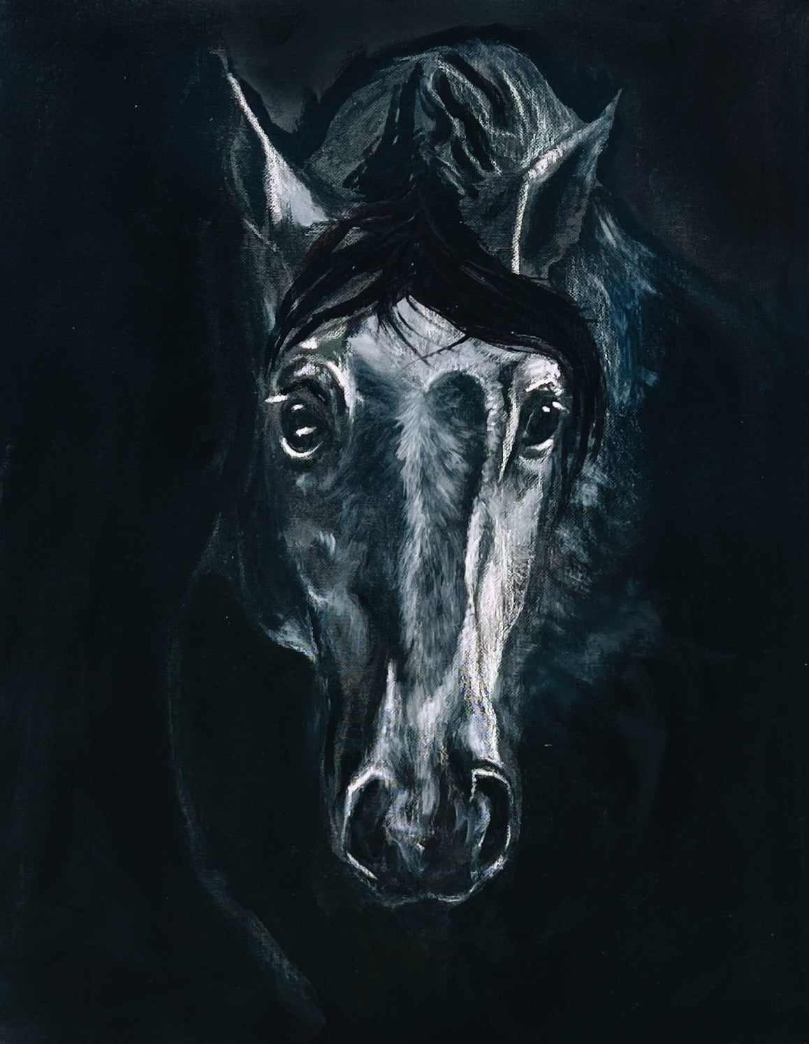 The details came together slowly—the delicate shifts in texture, the soft glow of light on muscle and bone, the way the black mane spills into the dark background as if the horse itself is part of the unseen. It felt like a portrait of presence—a reminder that sometimes the most profound moments come not in striving, but in stillness.
