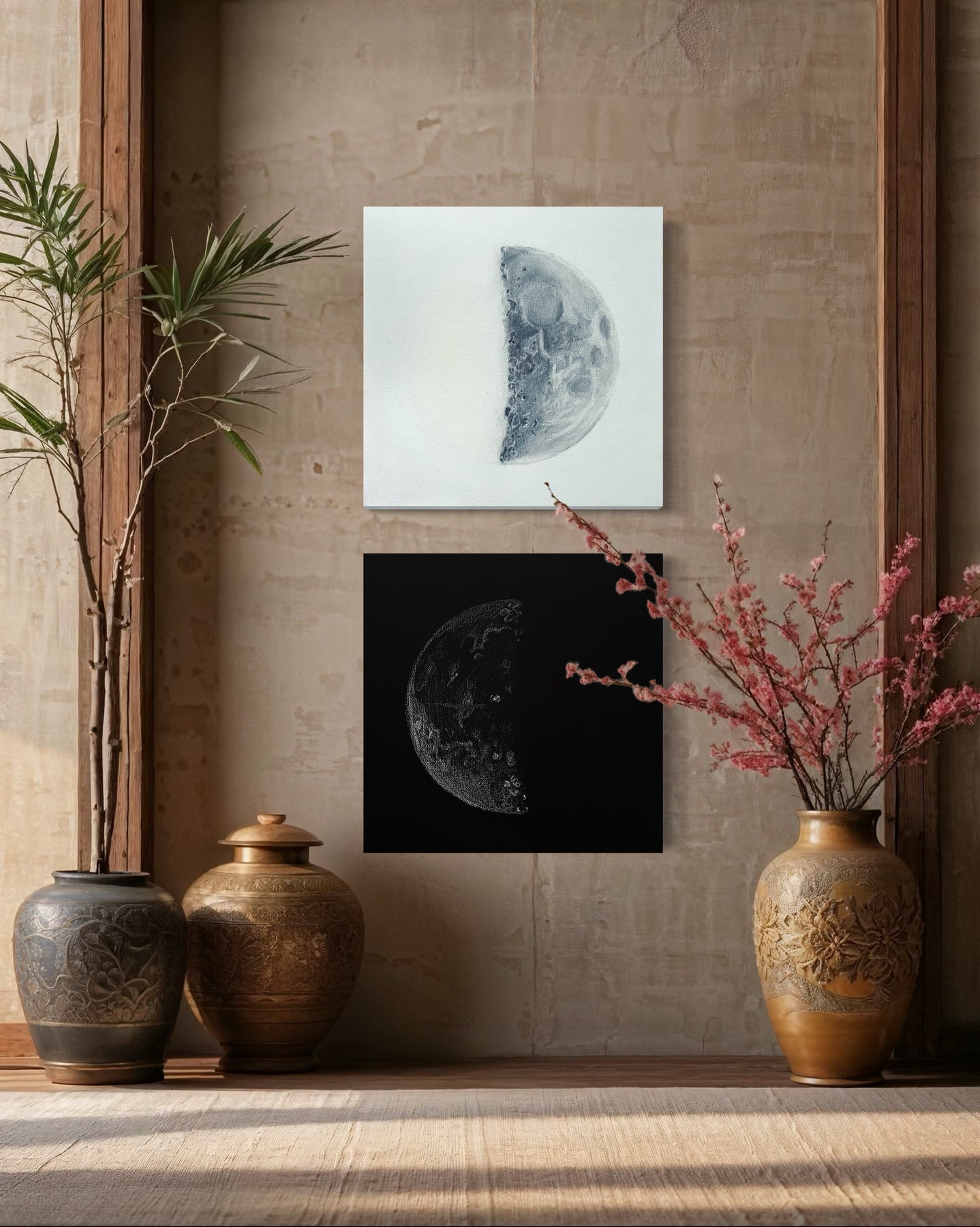 The Light Phases can stand alone, be displayed as a set, or be mixed and matched with the Dark Phases for a dynamic pairing that reflects both contrast and unity. Whether you choose one or several, these pieces invite you to reflect on the beauty of every season—the light, the dark, and all the phases in between.