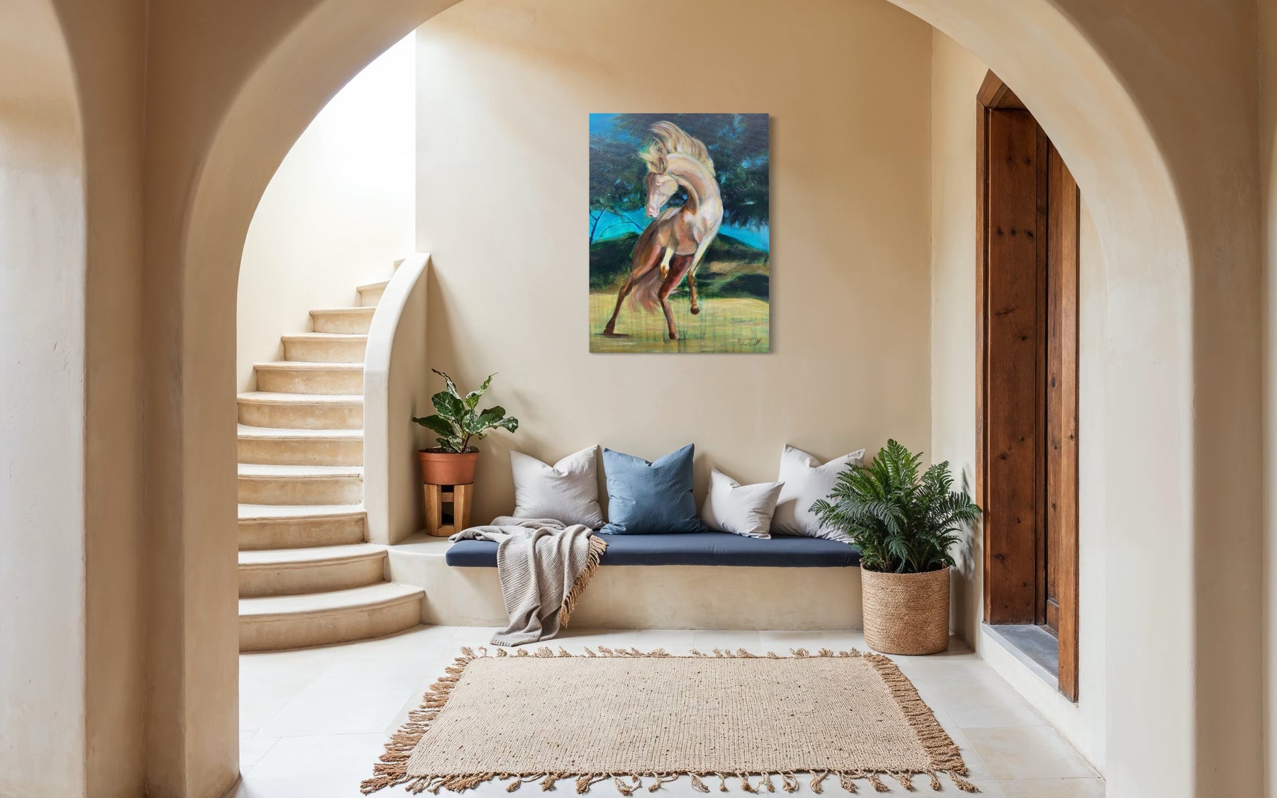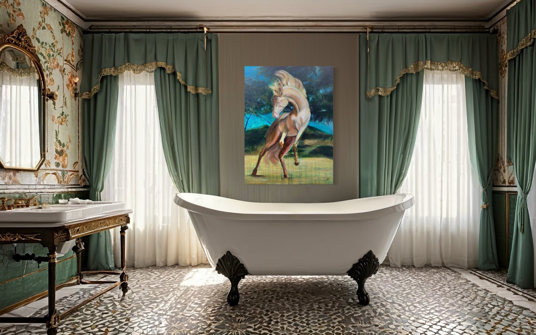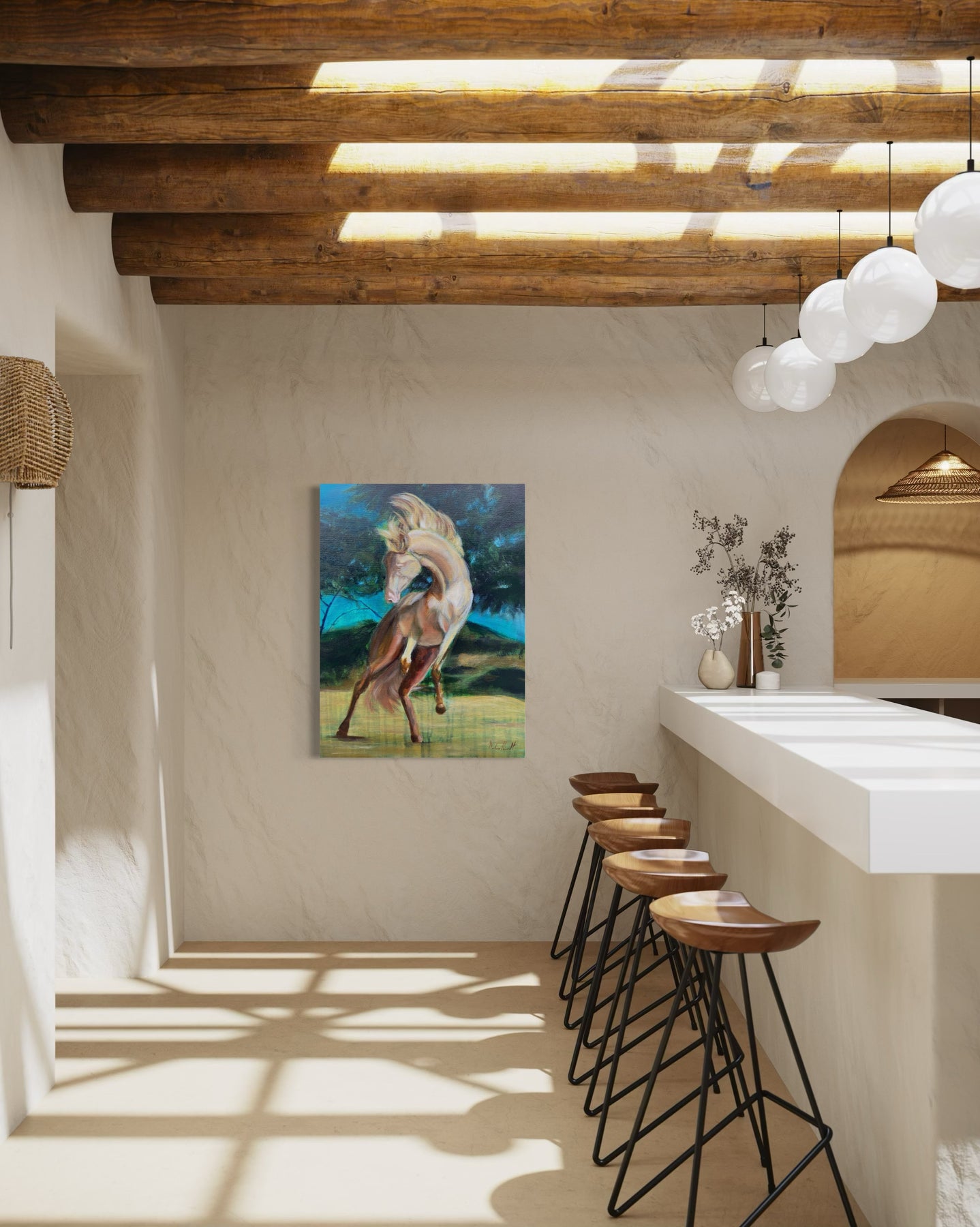 I painted “Unbridled” out of that love. Not just for horses as animals, but for what they embody: strength without force, beauty without apology, presence without distraction. Every brushstroke was a study in movement and restraint—how much to hold back, how much to release.