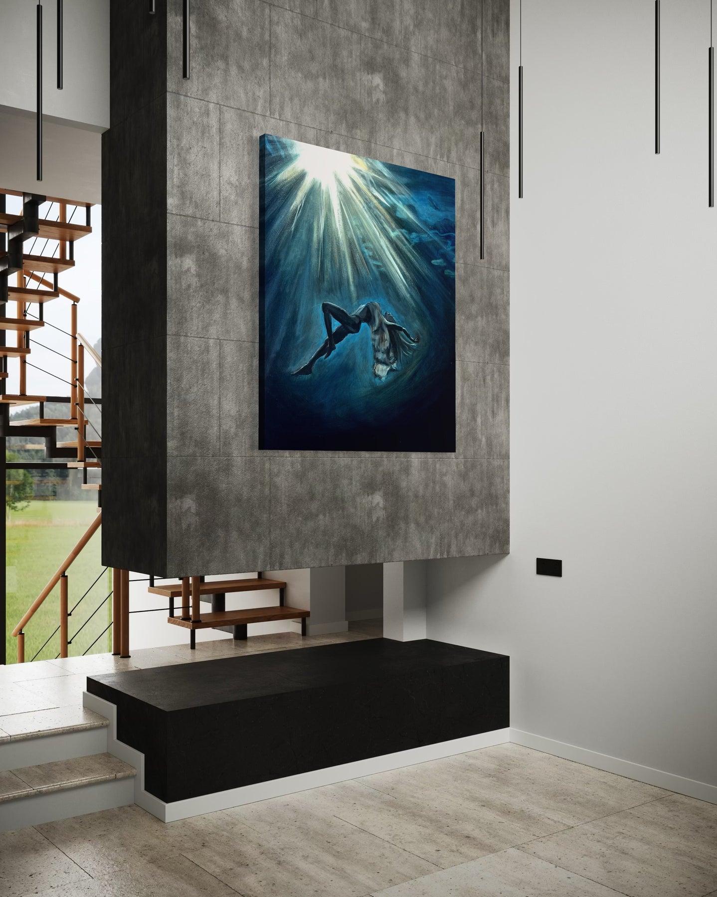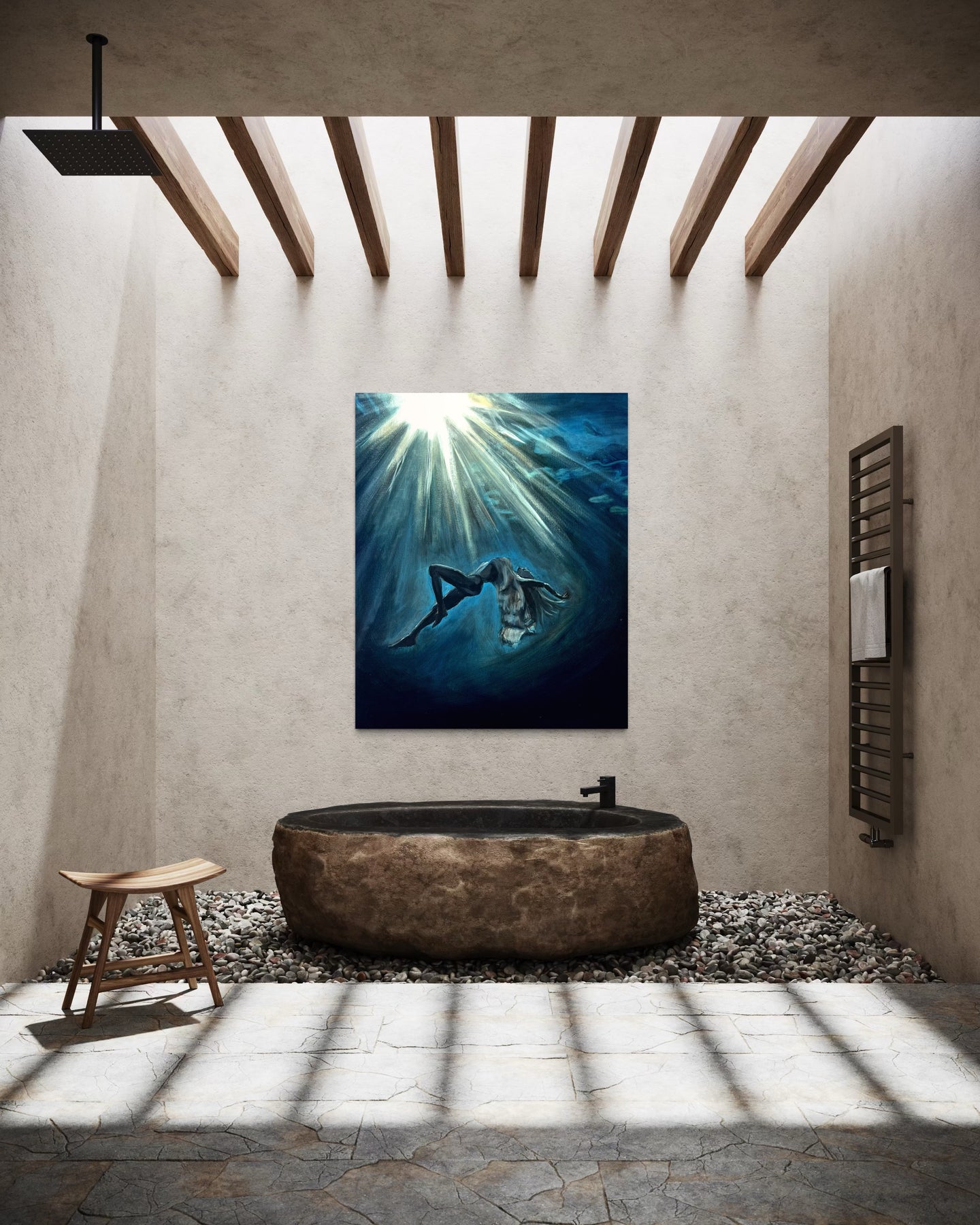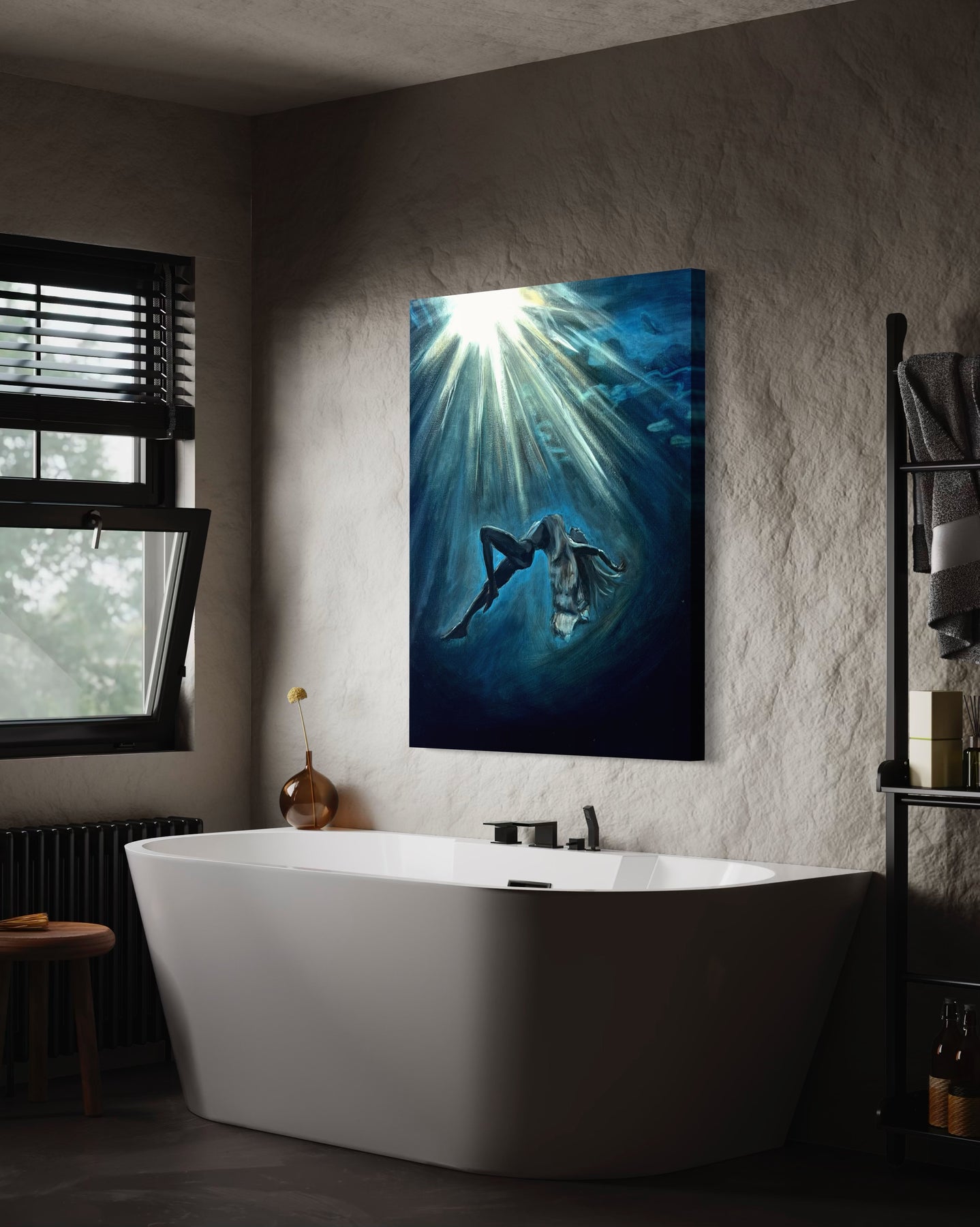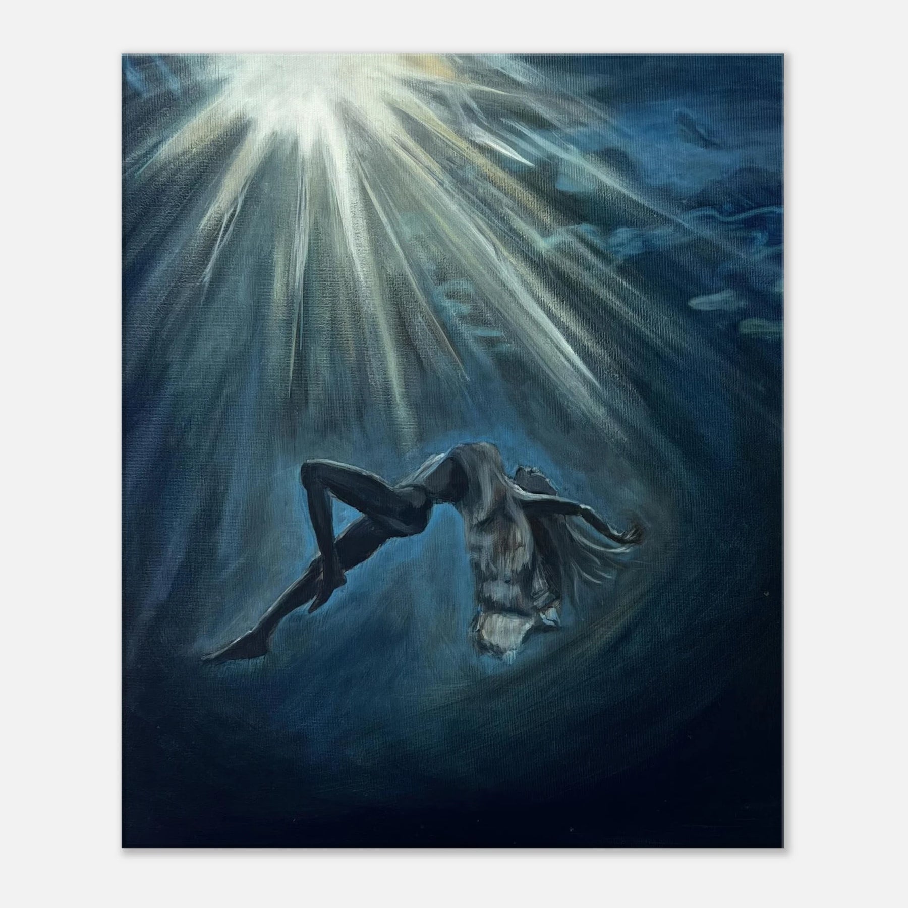 “Deep Within” is about that kind of seeing. A woman, submerged in water, suspended between stillness and motion. Her face is calm, her body at ease—but there’s a sense of surrender here too. A quiet letting go. The kind that happens when you stop fighting the current and finally allow yourself to feel it.