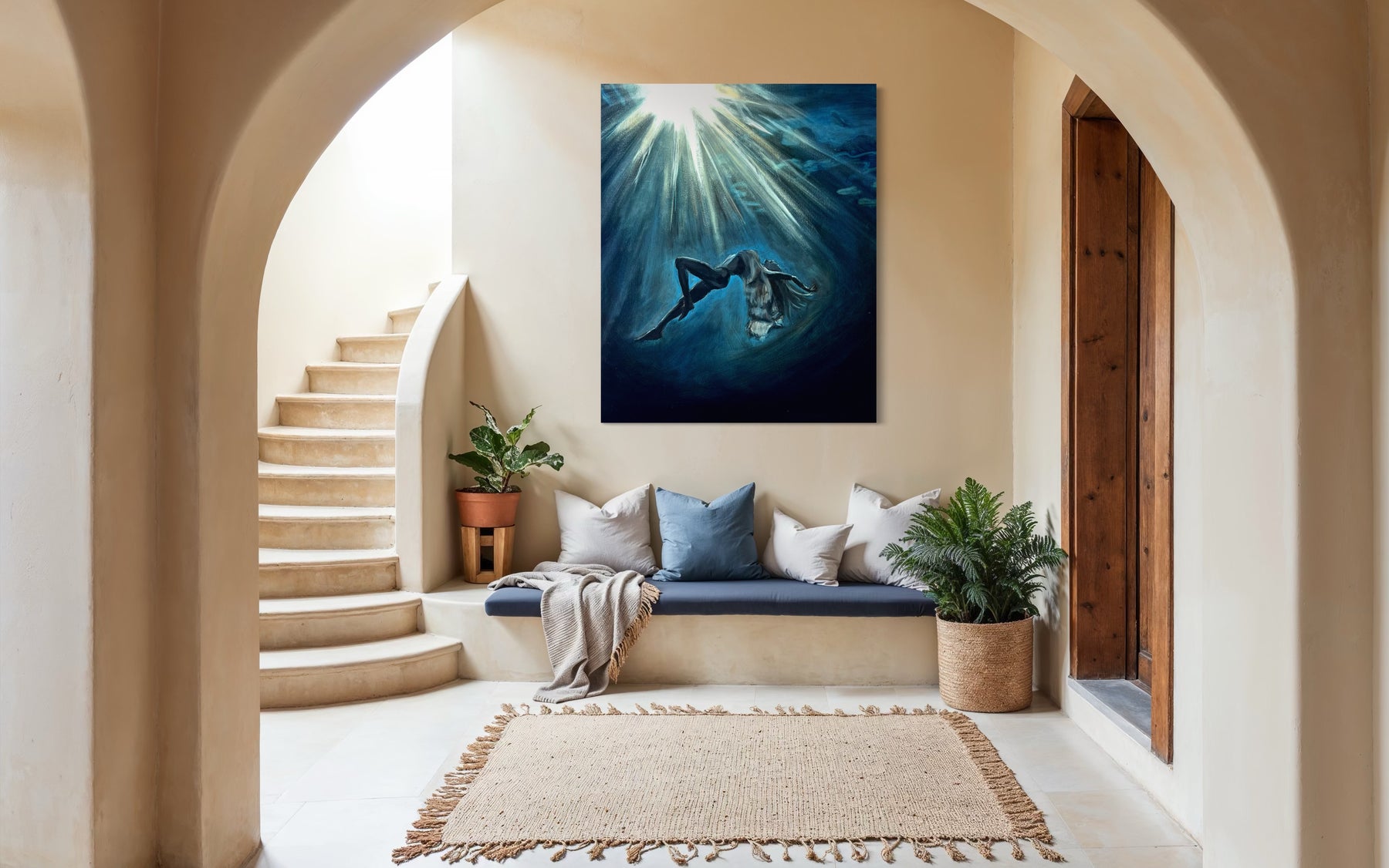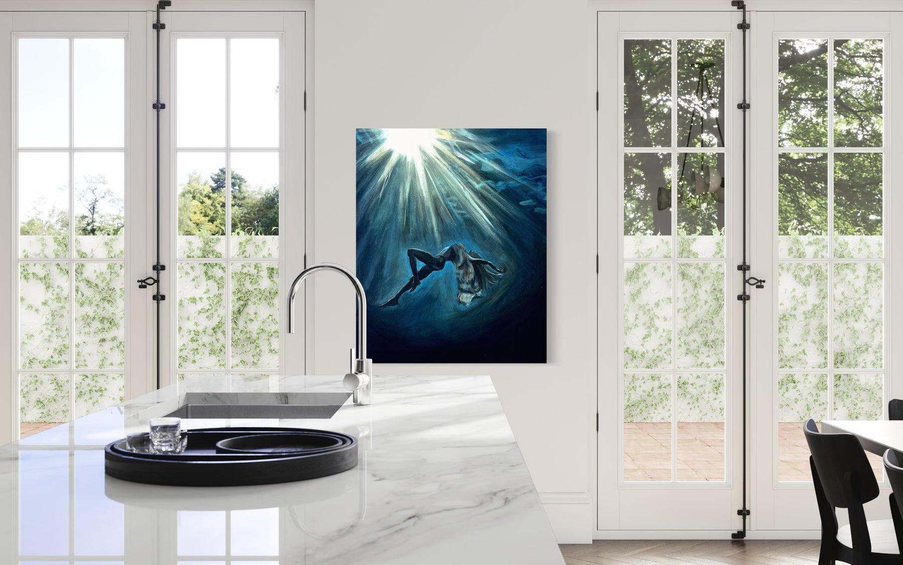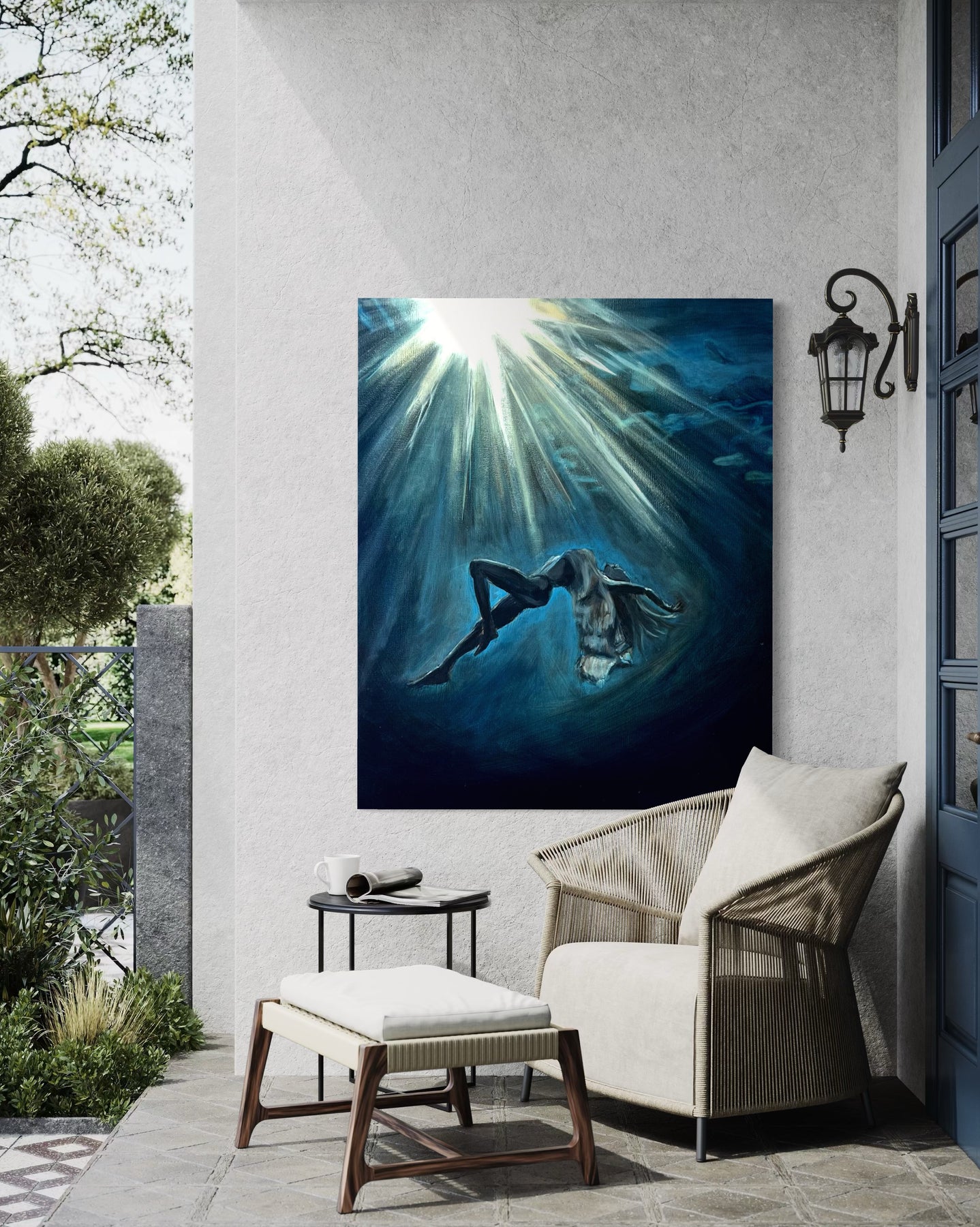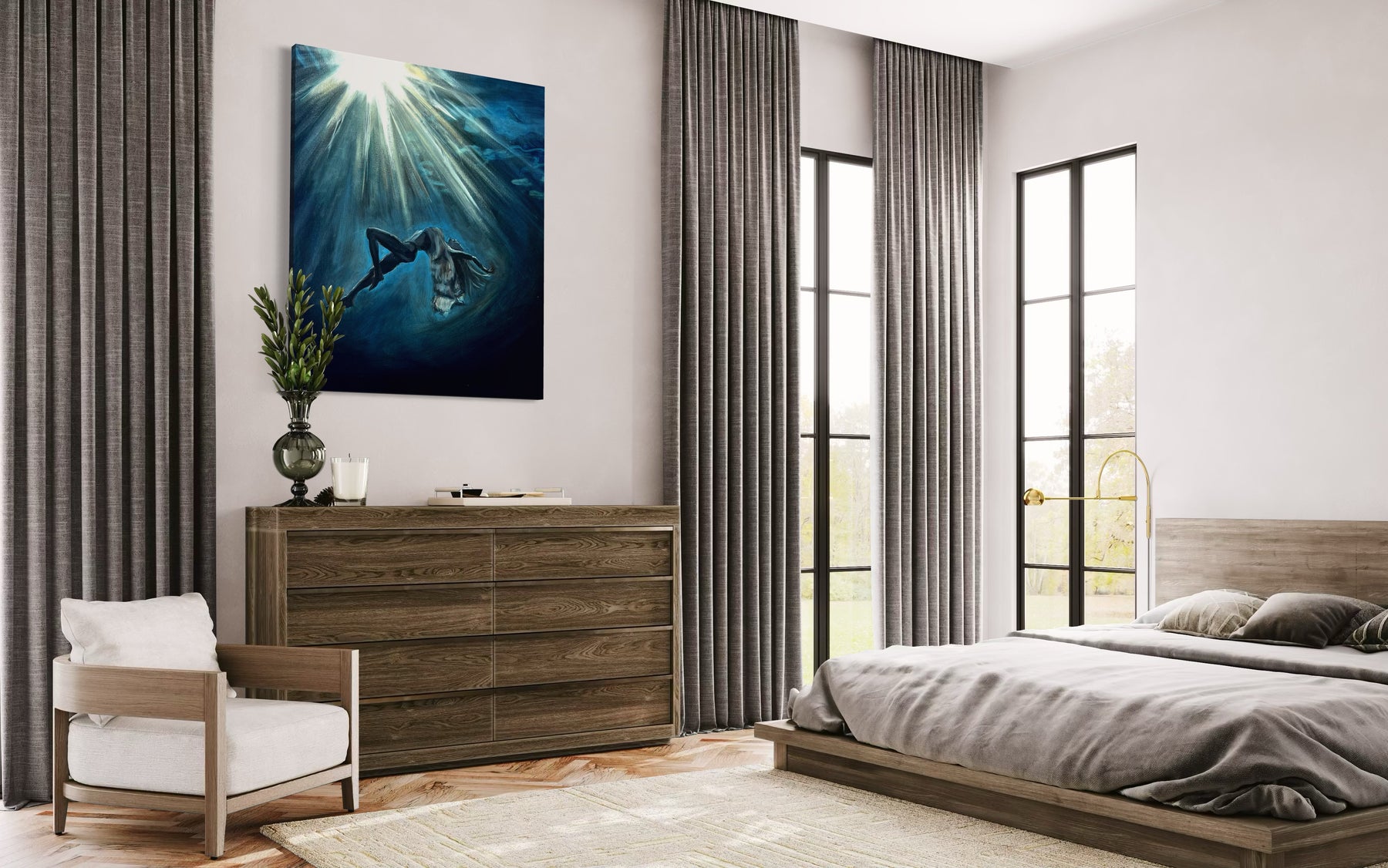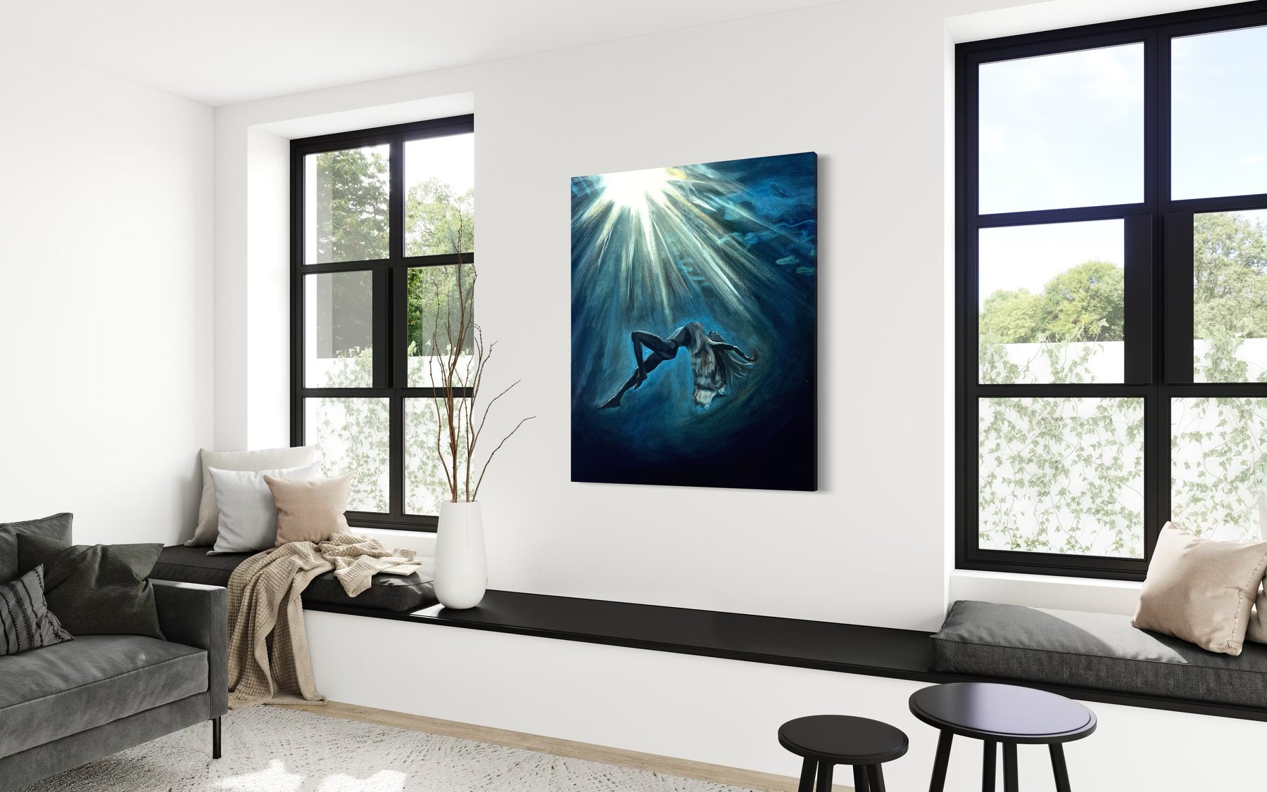 “Deep Within” is about that kind of seeing. A woman, submerged in water, suspended between stillness and motion. Her face is calm, her body at ease—but there’s a sense of surrender here too. A quiet letting go. The kind that happens when you stop fighting the current and finally allow yourself to feel it.