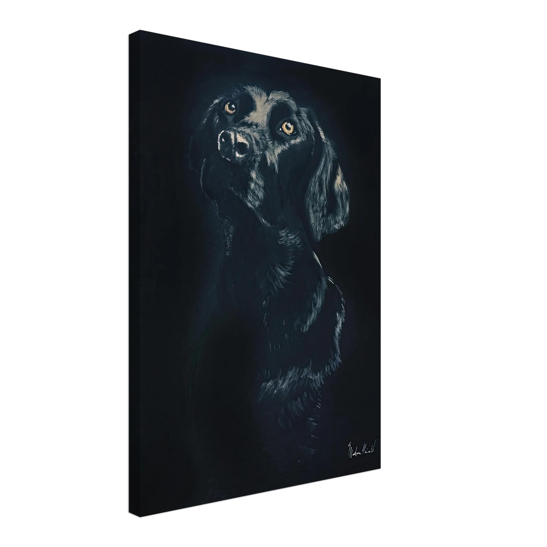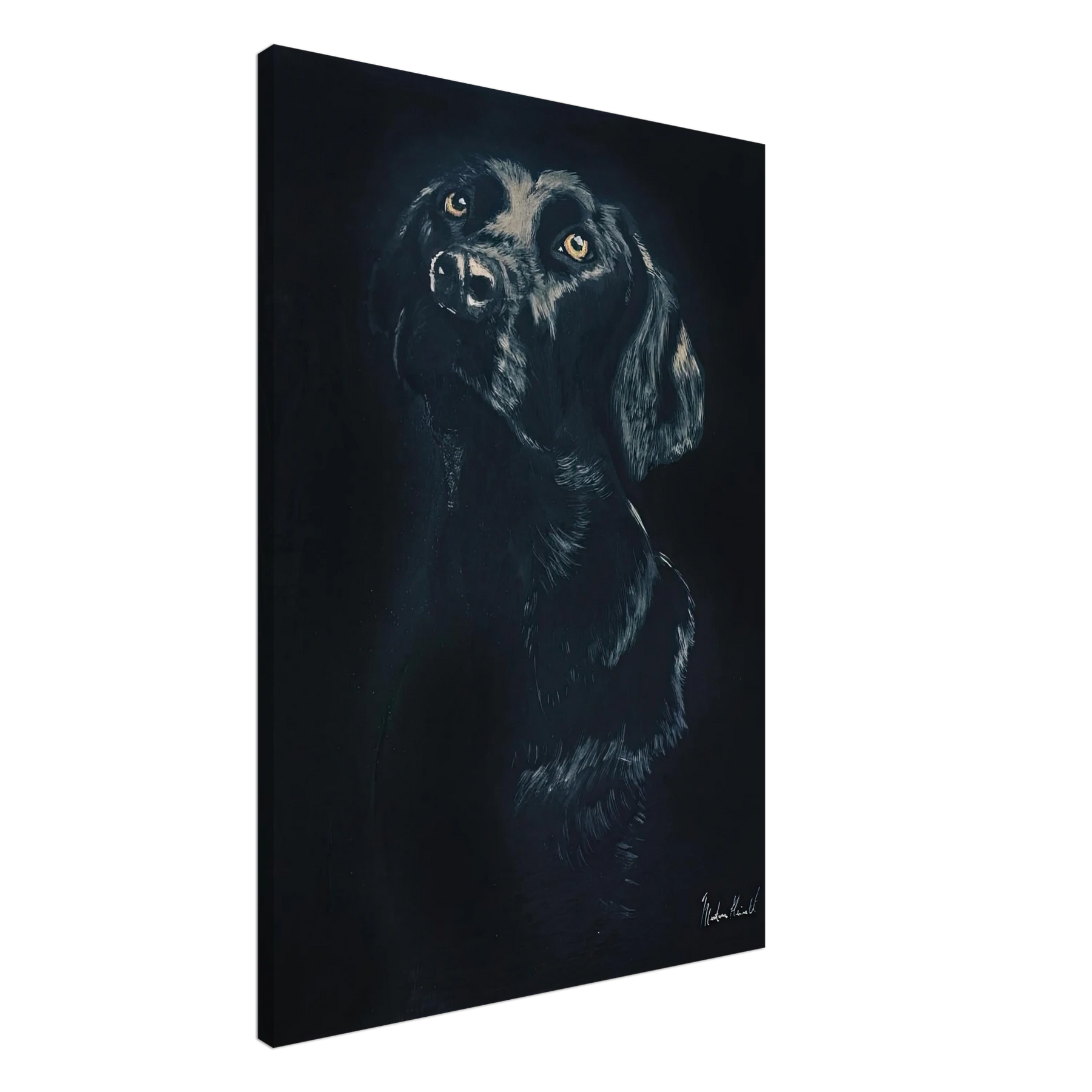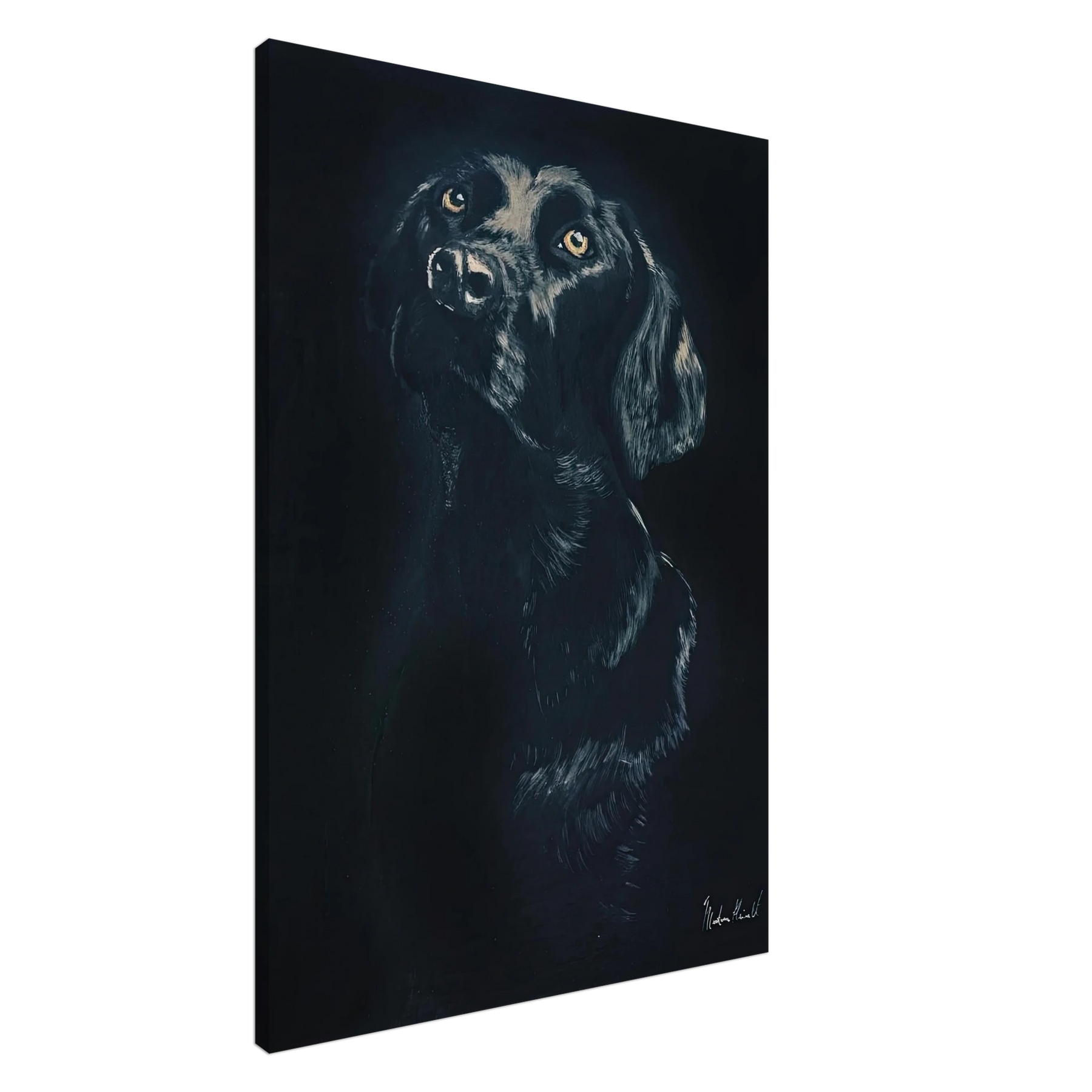 The dark background wraps the subject in calm, letting the light speak for itself. Every brushstroke was laid down with care, building depth into the fur, warmth into the gaze, and reverence into the space surrounding it.
