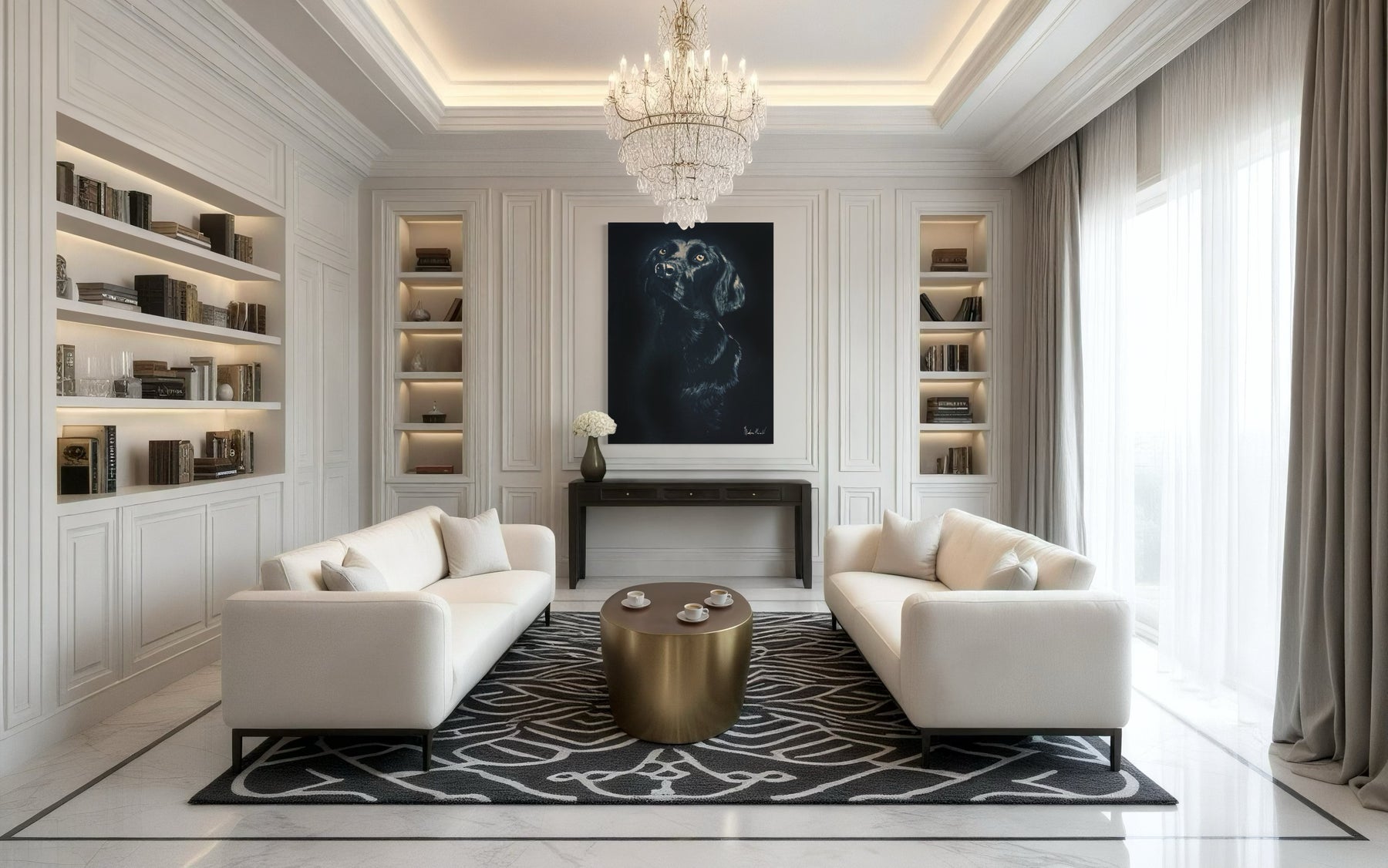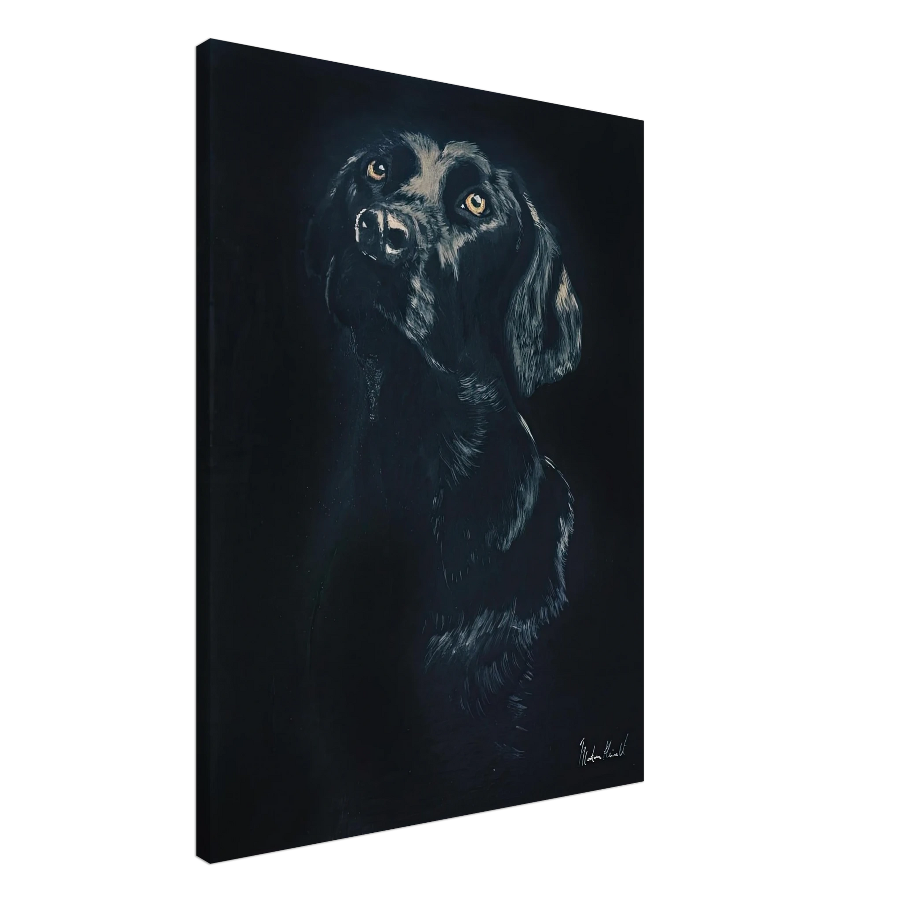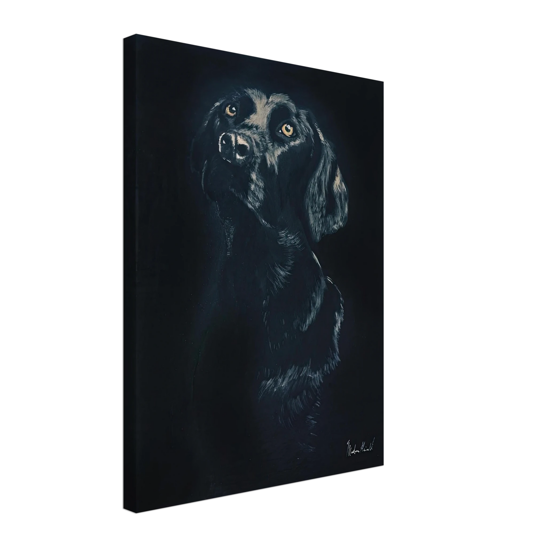 The dark background wraps the subject in calm, letting the light speak for itself. Every brushstroke was laid down with care, building depth into the fur, warmth into the gaze, and reverence into the space surrounding it.