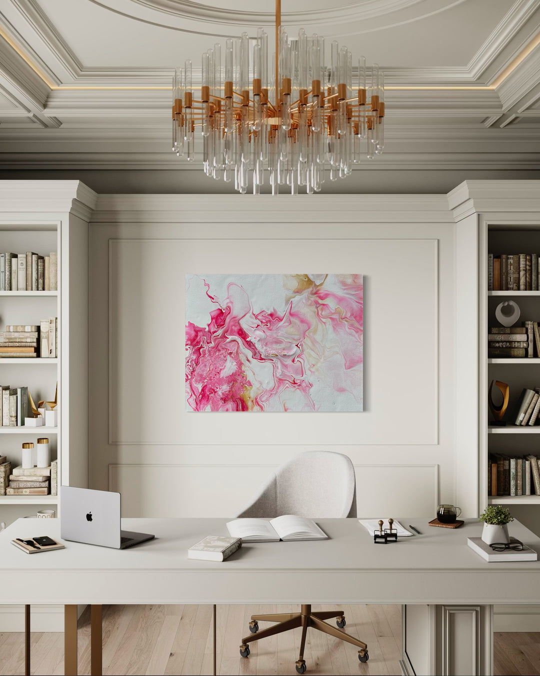 Each piece in Living Waters is a Dutch pour—an abstract painting created by allowing liquid acrylics to flow across the surface. The technique is unpredictable, free, and full of movement. I guided the paint but never controlled it completely, allowing the water-like forms to shape themselves. It felt like a kind of prayer—letting go of precision and letting the Spirit lead.