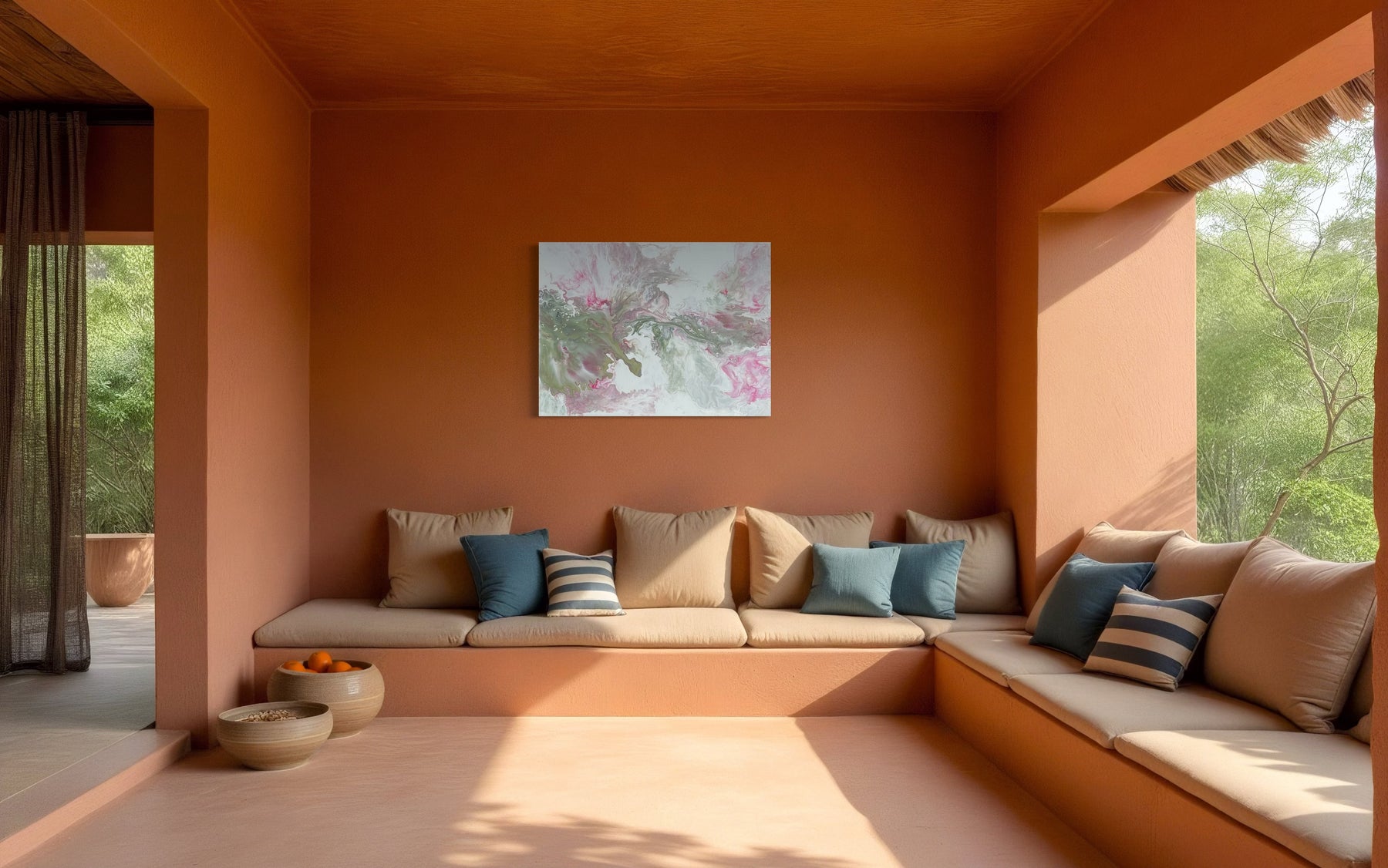 With their gentle palette of mossy greens, rose pinks, and warm neutrals, the Rooted pieces speak to what it means to grow slowly and intentionally — to be held in grace and shaped by it. The vertical flow of Rooted I and Rooted II creates a sense of upward movement, while the broader horizontal spread of Rooted III brings balance and breath to the series.