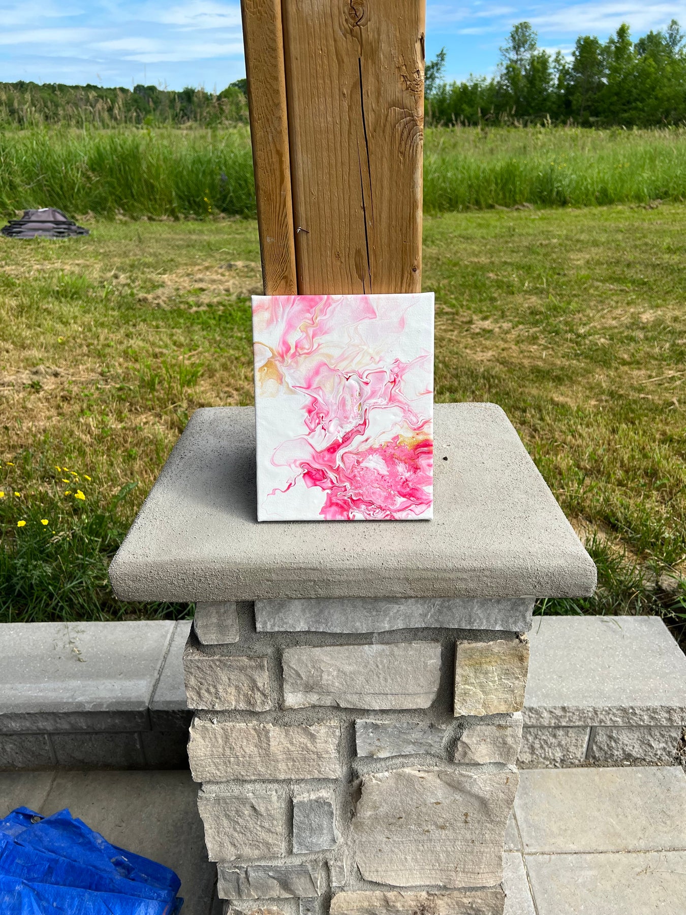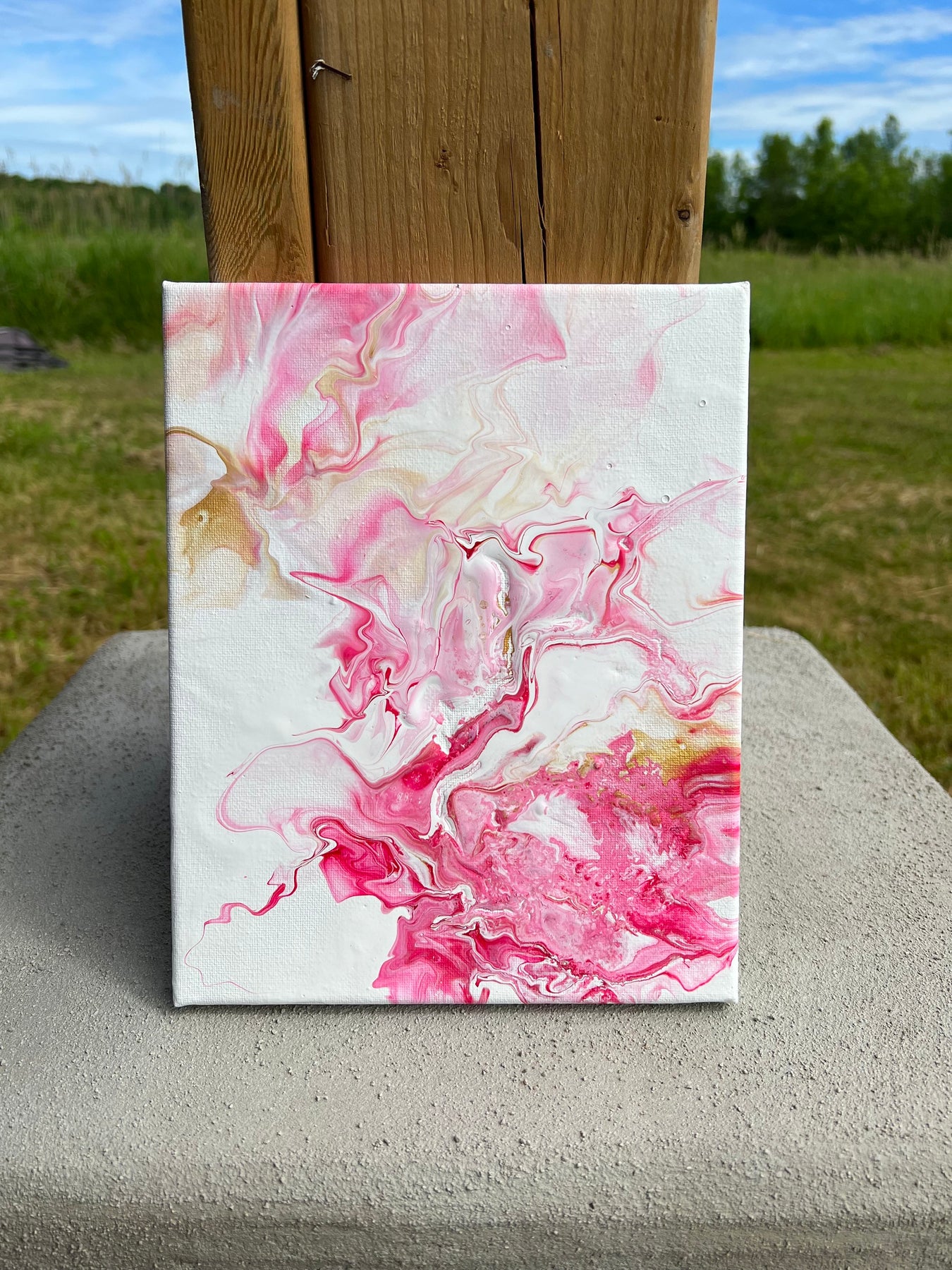 Where New Light I carries the calm of water and breath, New Light II holds the warmth of love rising — unexpected, overwhelming, and full of grace. The bold pinks in this piece flow like a heartbeat across the canvas, meeting soft blush tones and streaks of gold that shimmer gently beneath the surface. There’s a rhythm to the movement here, like the rocking of a cradle or the pulsing of new life.