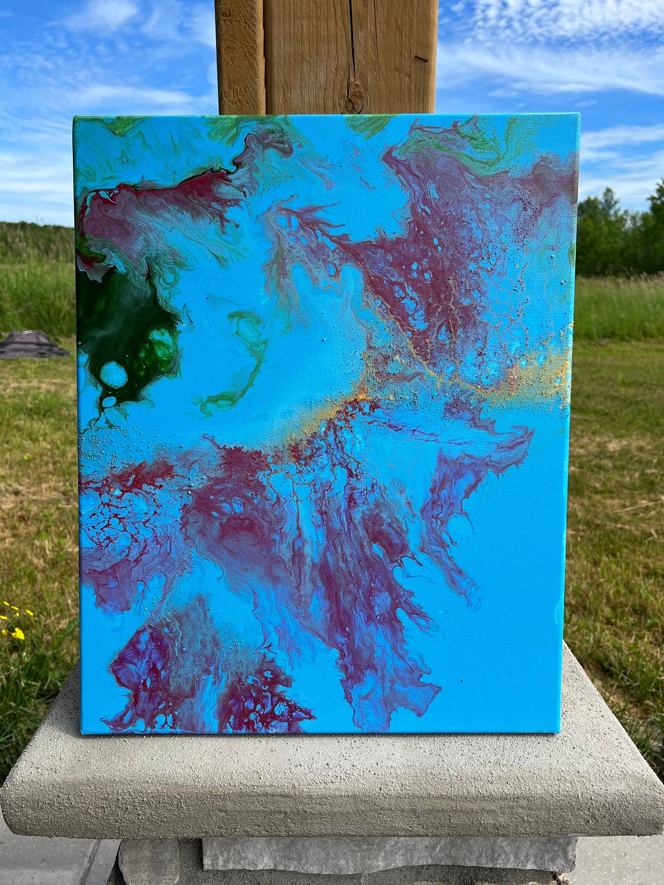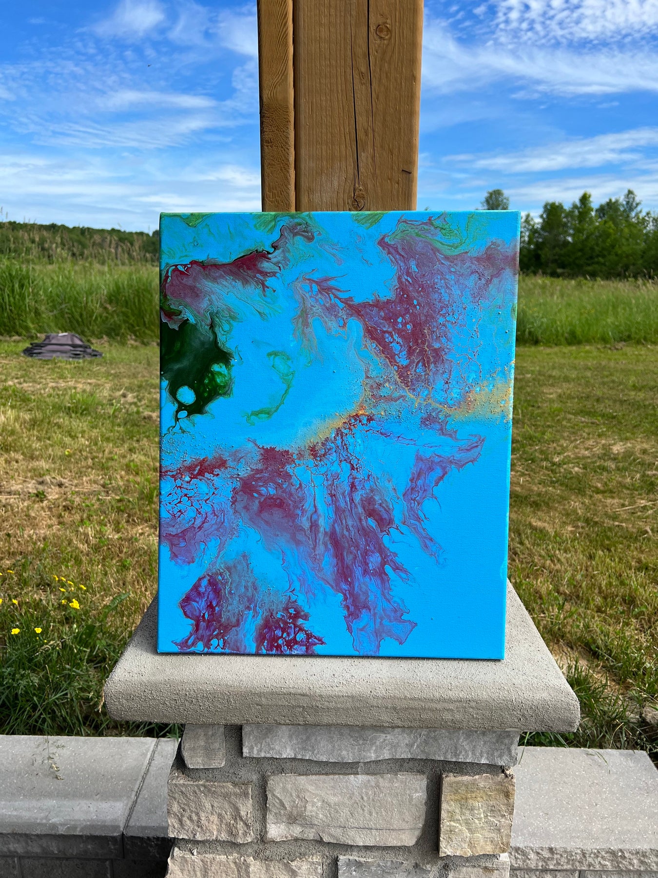 Depths of Spirit is one of the most vibrant pieces in the Living Waters collection — an exploration of the mystery and movement of God in places that feel vast, wild, and unknowable. Painted outdoors in the Thousand Islands while my daughter Autumn, just a few months old, slept beside me, this piece felt like it came from somewhere deeper than thought — a place beneath the surface, stirred by awe and new love.