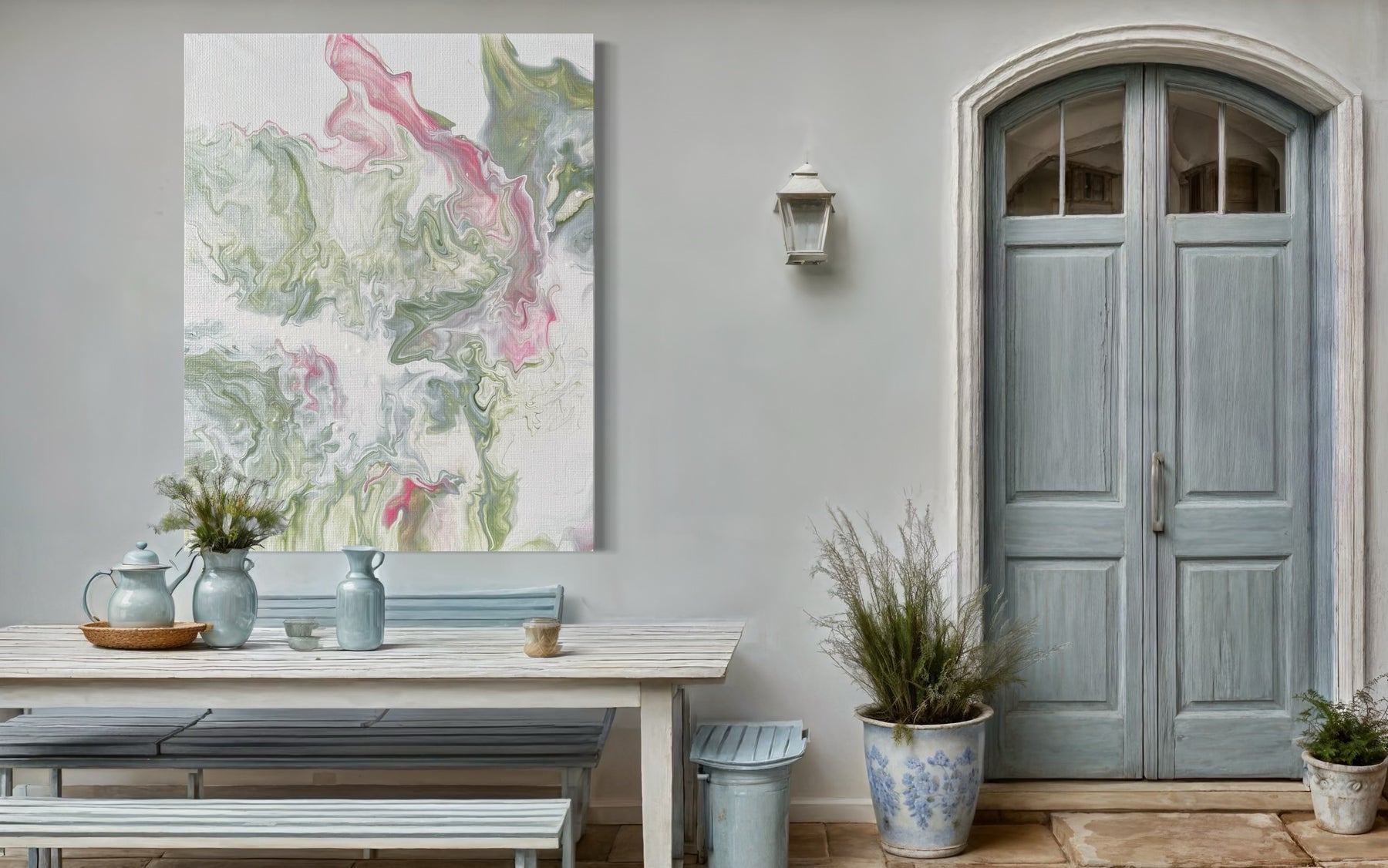 Soft Waters captures the gentlest side of the Spirit — the way grace flows without force, and renewal can come quietly. With tender greens, blush pinks, and creamy whites blending across the canvas like petals in slow motion, this piece feels like a breath of peace. A breeze. A hush. It’s not dramatic — it’s deeply present.